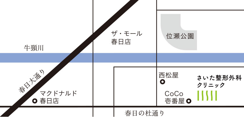 当院は、春日大通り「春日神社入口」交差点より春日の社通りを進んで、